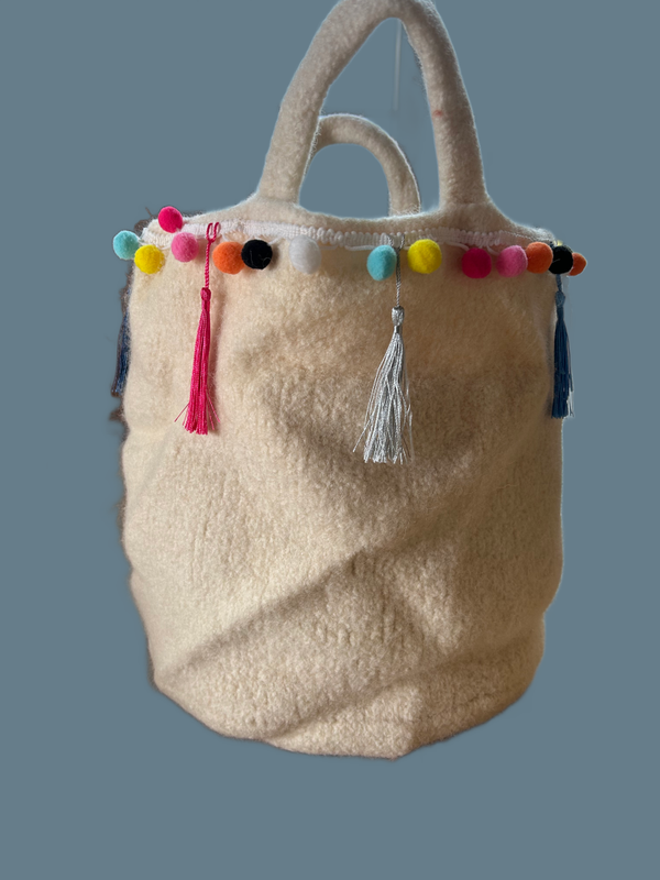 Ein besonderes Highlight sind die bunten Pompons am Rand, die der Tasche einen fröhlichen und verspielten Look verleihen. Sie sorgen für das gewisse Etwas und machen jede Tasche zu einem echten Unikat!